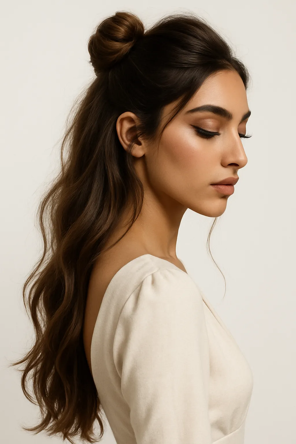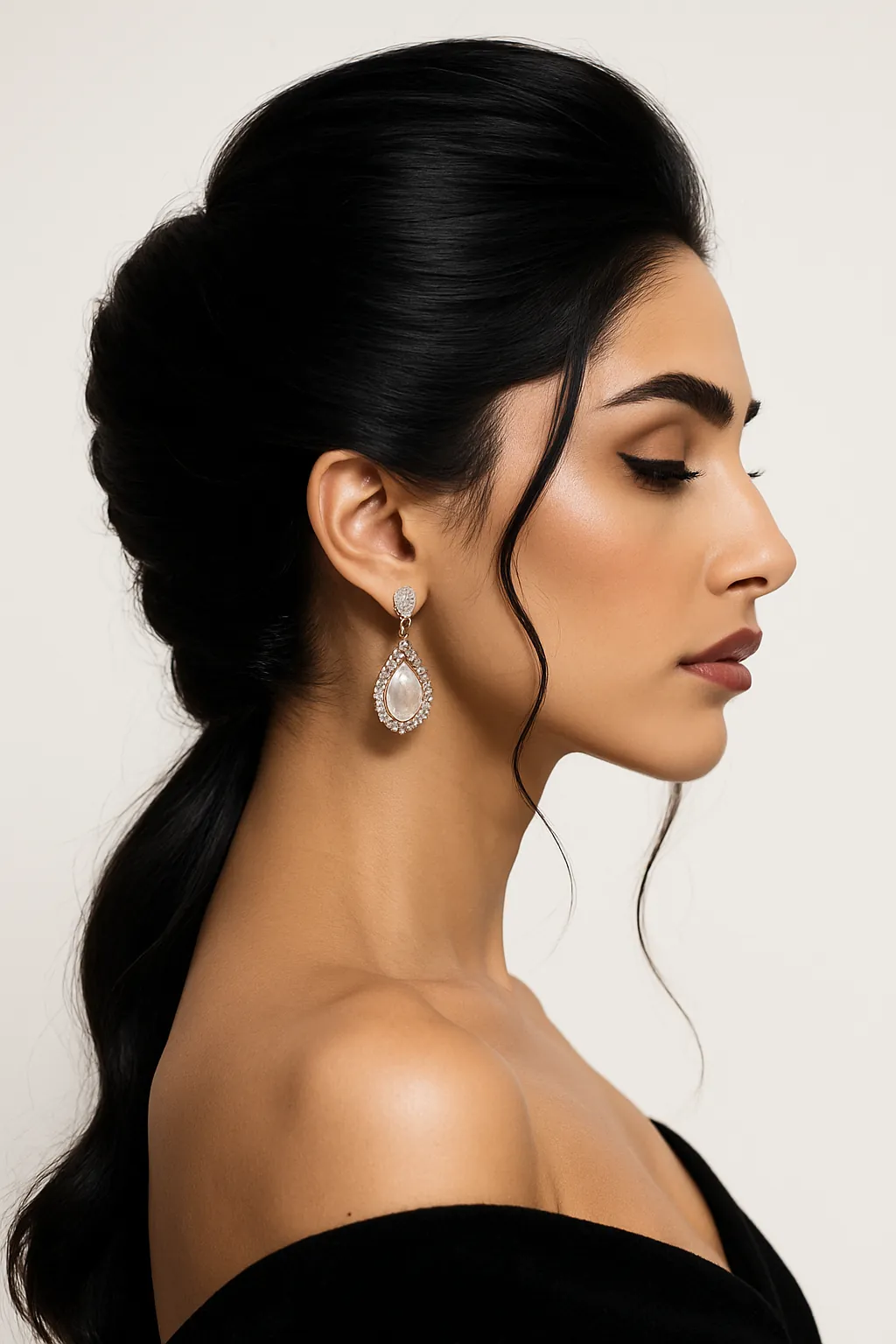 التسريحة المرفوعة تُبرز ملامح وجهكِ وخط العنق بأسلوب جذاب وأنيق، لتظهري دائماً بأفضل صورة حتى في أبسط الإطلالات.